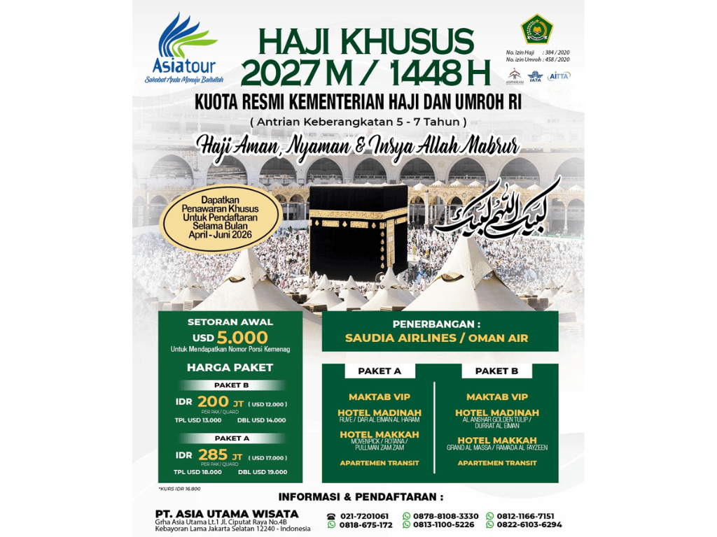 HAJI KHUSUS ASIATOUR TRAVEL - PAKET B