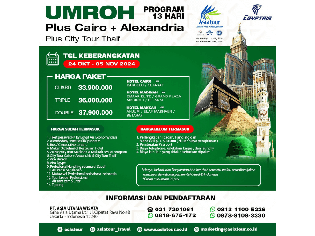 PAKET UMROH PLUS CAIRO ALEXANDRIA FREE THAIF - PROGRAM 13 HARI - ASIATOUR