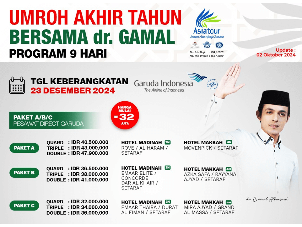 Paket Umroh Akhir Tahun 2024 Asiatour bersama dr.Gamal Paket A