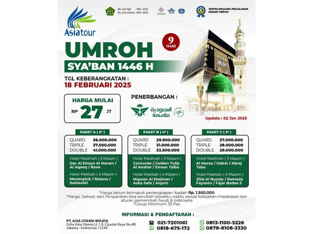 PAKET UMROH SYA'BAN 18 FEBRUARI 2025 ASIATOUR | PROGRAM 09 HARI [ A ]