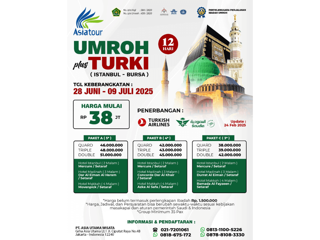 Paket Umroh Plus Turki 12 Hari Keberangkatan 22 JUNI - 03 JULI 2025 by Saudia Airlines