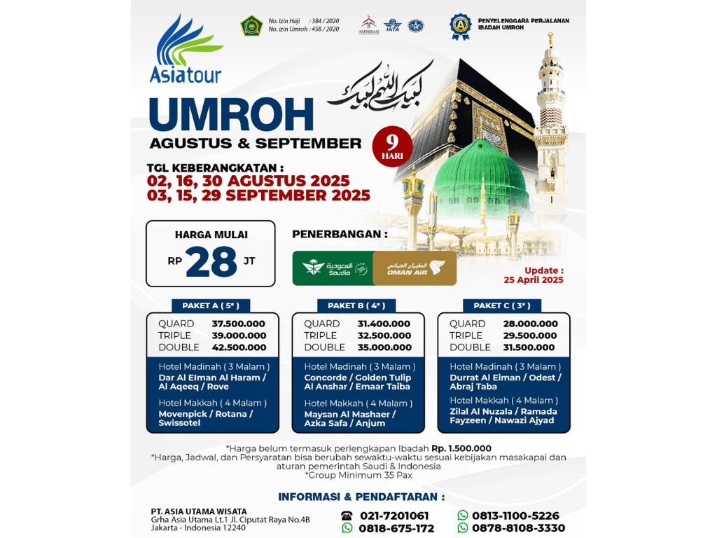 PAKET UMROH 1447 H AGUSTUS - SEPTEMBER 2025 PAKET C | PROGRAM 09 HARI