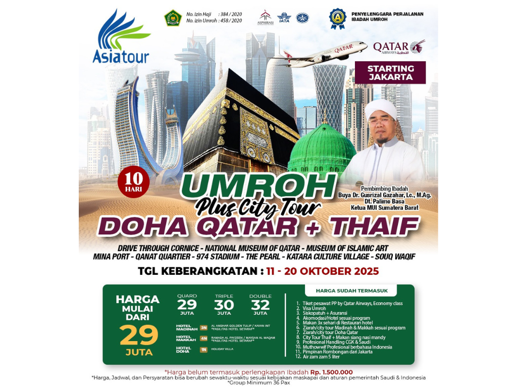 PAKET UMROH ASIATOUR PLUS DOHA QATAR 11 OKTOBER 2025 10 HARI | SILVER