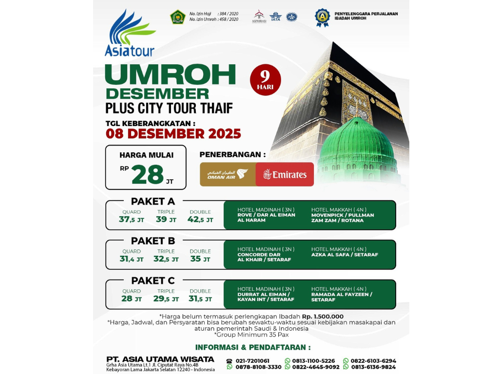 UMROH PLUS THAIF 08 DESEMBER 2025 | ASIATOUR
