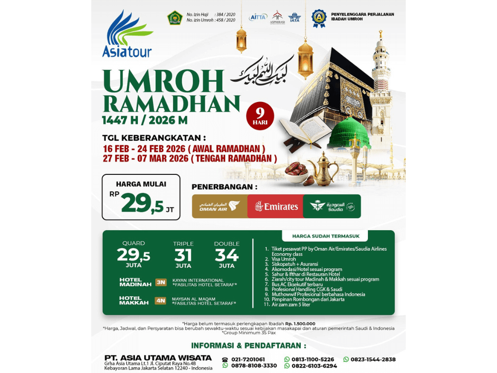 UMROH RAMADHAN 1447 H / 2026 ASIATOUR - PROGAM AWAL & TENGAH 09 HARI