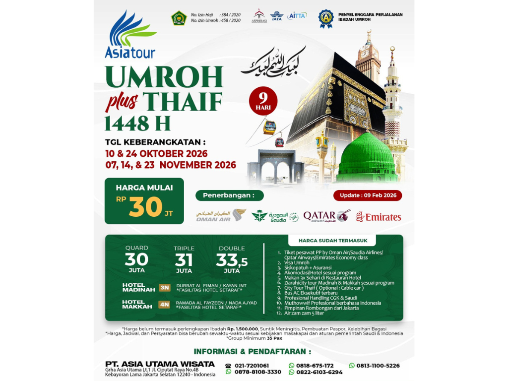UMROH PLUS THAIF 07, 14 & 23 NOVEMBER 2026 ASIATOUR TRAVEL