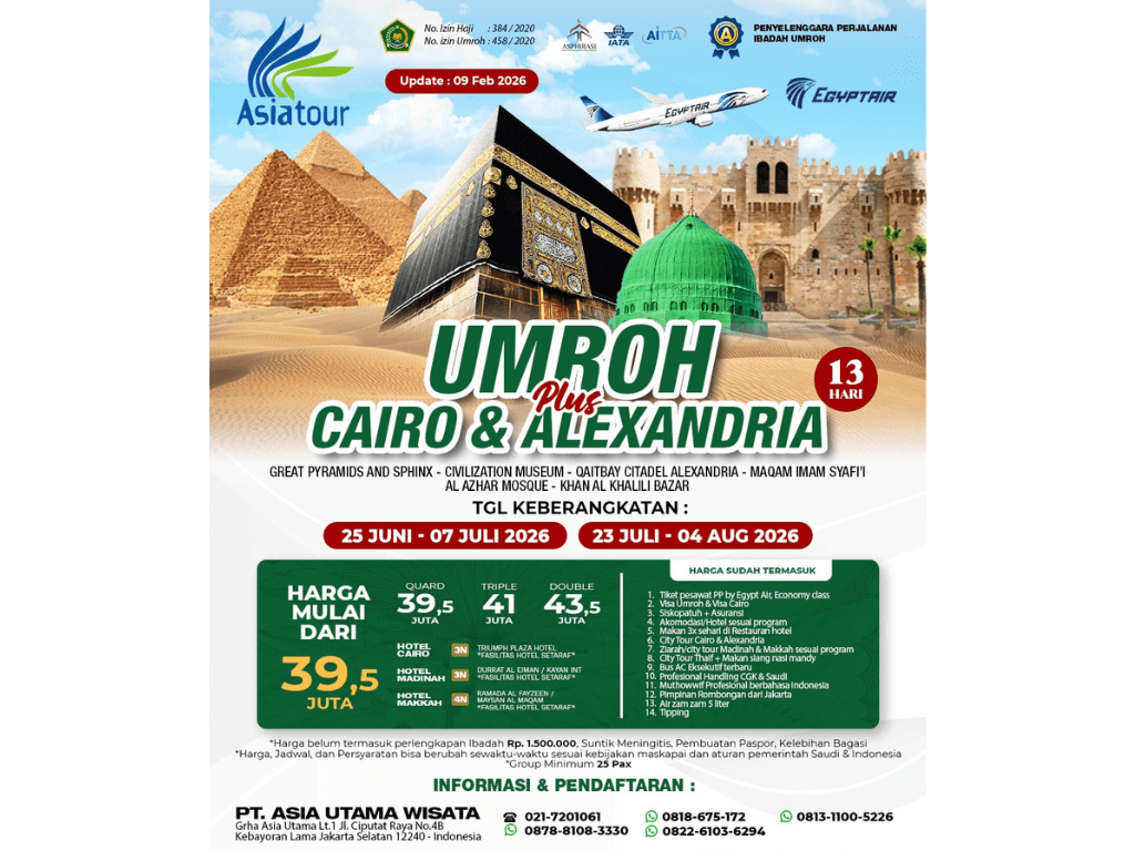 PAKET UMROH PLUS CAIRO ALEXANDRIA 13 HARI ASIATOUR | 25 JUNI 2026
