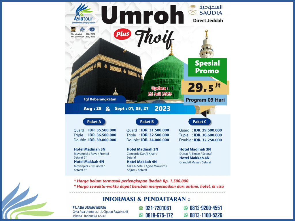 - *Harga, Jadwal dan Persyaratan bisa berubah sewaktu-waktu sesuai kebijakan maskapai dan aturan pemerintah Saudi & Indonesia